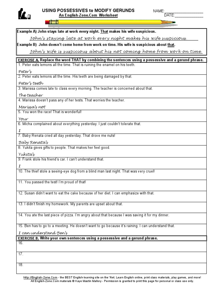 Gerund Phrase Exercises With Answers Pdf